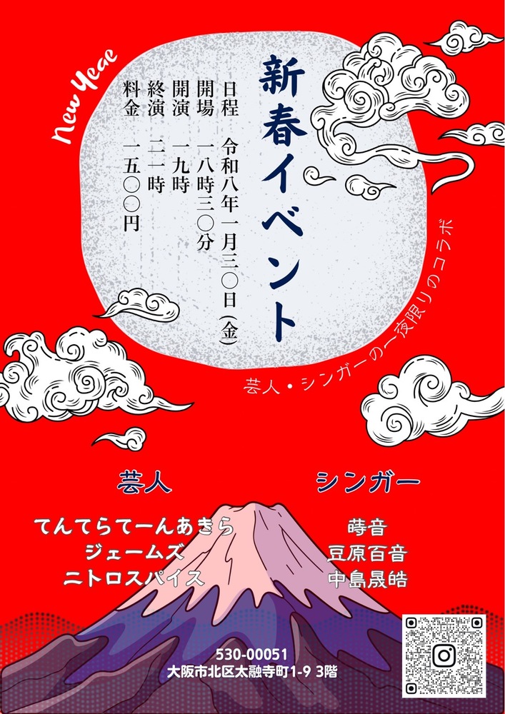 新春!芸人vs歌うたい 夢のコラボ SCHEDULE 2026/01/30(金) くさのね劇場 開場18:30 /開演19:00 料金¥1500(1 drink付) チケットご予約 URLをコピーする 報告する