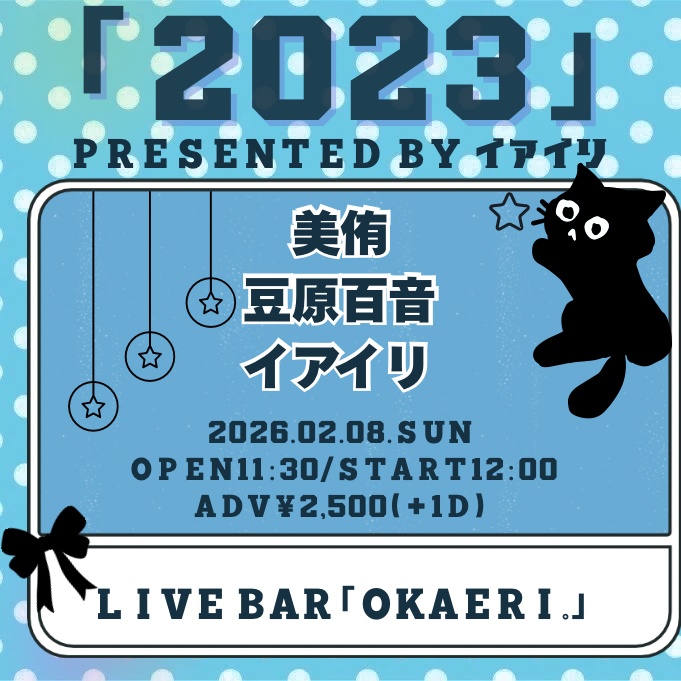 2023 SCHEDULE 2026/02/08(日) Live bar.「OKAERI。」 OPEN 11:45 / START 12:00 ADV. ¥2500(+1D) 2番手12:35から URLをコピーする 報告する